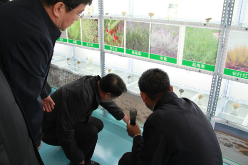 考察團先后參觀了蒙草植物標本室、北方植物種質(zhì)資源庫、組培育苗車間等。講到蒙草為什么能抗旱時,王召明干脆直接從育苗床上拿起一盆沙冬青小苗,倒掉里面的種植土,向大家展示它發(fā)達的根系。楊部長感慨說,這就是蒙草植物的秘密,也是蒙草公司成功的秘密啊!蒙草的鄉(xiāng)土化思維在城市綠化中開辟了新路,更在廣闊的道路沿線邊坡生態(tài)防護中提供了節(jié)約型生態(tài)建設(shè)范例,為祖國北方和國家生態(tài)建設(shè)做出了貢獻。