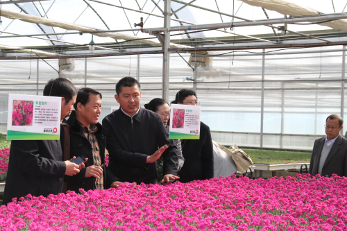董事長(zhǎng)王召明向?qū)<医榻B智能溫室內(nèi)苗木生長(zhǎng)情況