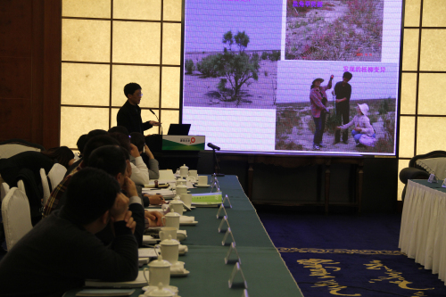 會(huì)上,各位專家對(duì)具有不同抗逆特性的植物研究成果進(jìn)行了闡述,并深入交流探討抗逆性植物在生態(tài)建設(shè)中的應(yīng)用。來(lái)自于內(nèi)蒙古大學(xué)、內(nèi)蒙古農(nóng)業(yè)大學(xué)、山東農(nóng)業(yè)大學(xué)、山東省東營(yíng)市農(nóng)業(yè)科學(xué)研究所等機(jī)構(gòu)的專家濟(jì)濟(jì)一堂,共同分享交流了《鹽生植物資源的保護(hù)及利用》、《黃河三角洲鹽堿地改良與造林綠化技術(shù)》、《荒漠植物蒙古扁桃水分生理特性》等課題研究成果。