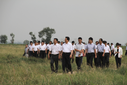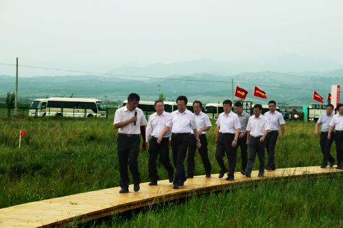 觀摩檢查組行走在萬畝草原建設(shè)現(xiàn)場(chǎng)