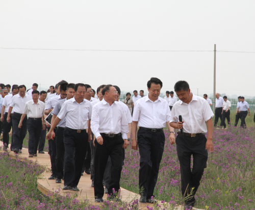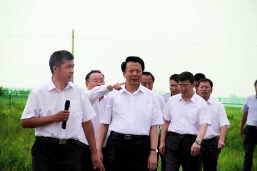 8月7日,自治區(qū)黨委書記王君、自治區(qū)主席巴特爾帶領(lǐng)自治區(qū)推動(dòng)科學(xué)發(fā)展現(xiàn)場(chǎng)觀摩檢查組,對(duì)蒙草抗旱新城區(qū)萬畝草場(chǎng)建設(shè)項(xiàng)目進(jìn)行考察。王君書記深入項(xiàng)目建設(shè)現(xiàn)場(chǎng)了解萬畝草原的恢復(fù)建設(shè)情況,蒙草抗旱董事長(zhǎng)王召明對(duì)項(xiàng)目的前期論證、草種選取、施工技術(shù)、未來遠(yuǎn)景進(jìn)行了介紹和匯報(bào)。