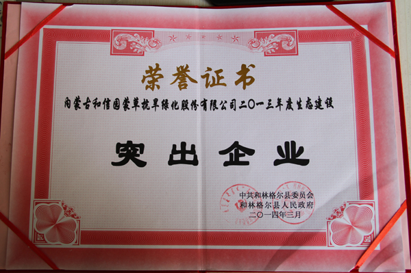 和林縣人民政府為我公司頒發(fā)的榮譽證書