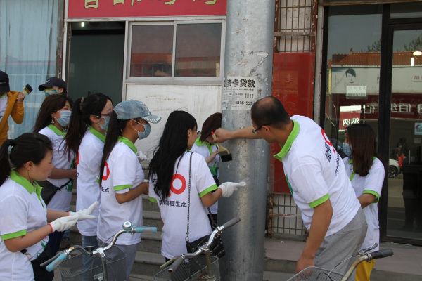 “草精靈”們放棄休息時(shí)間,早早地來(lái)到和林縣城,頭頂烈日,手拿勞動(dòng)工具,風(fēng)風(fēng)火火地干起來(lái)!有些志愿者負(fù)責(zé)撿拾道路兩邊和綠化帶里的垃圾,并整治非機(jī)動(dòng)車的亂停放;另一些志愿者們則集中起來(lái),對(duì)路邊的黑色廣告進(jìn)行鏟除。經(jīng)過(guò)一上午的勞動(dòng),幾條街道的環(huán)境面貌有了煥然一新的感覺(jué),“草精靈”們用辛勤的汗水換得居民的稱贊,用無(wú)聲的行動(dòng)起到帶頭作用。