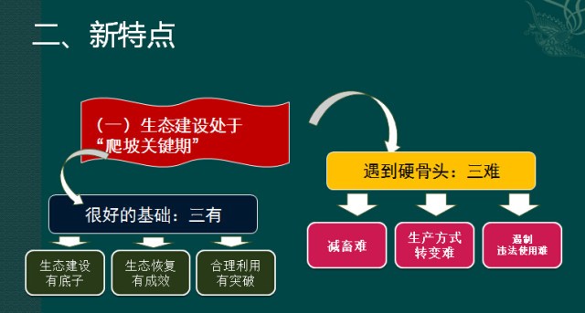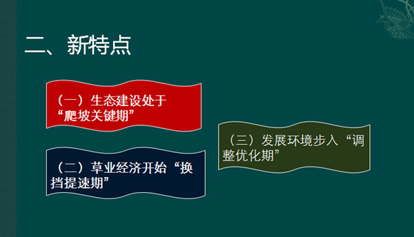 這個(gè)時(shí)期有三個(gè)特點(diǎn),一個(gè)是生態(tài)建設(shè)處于爬坡關(guān)鍵期;二是草原經(jīng)濟(jì)開始換擋提速期;三是發(fā)展環(huán)境步入調(diào)整優(yōu)化期。而這個(gè)“生態(tài)建設(shè)爬坡關(guān)鍵期”有三個(gè)問(wèn)題,也是三個(gè)最難啃的硬骨頭。