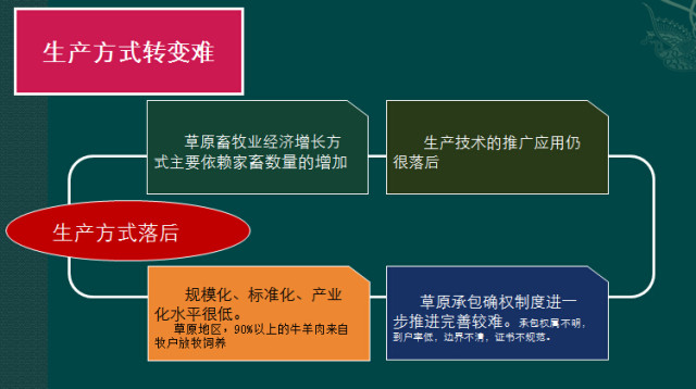 第二個(gè)硬骨頭是市場(chǎng)方式轉(zhuǎn)變還比較冷,主要體現(xiàn)在我們經(jīng)濟(jì)增長(zhǎng)方式主要依賴家畜數(shù)量的增長(zhǎng)。規(guī)?;?、產(chǎn)業(yè)化水平還比較低,生態(tài)環(huán)境的利益比較落后,還需要進(jìn)一步的完善。