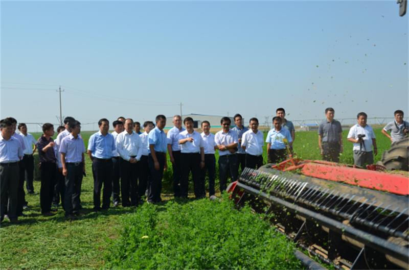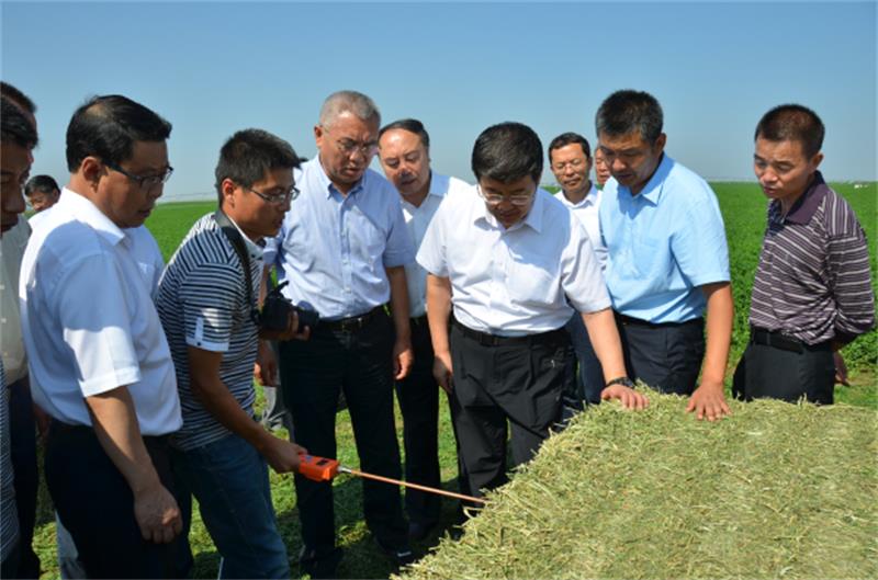 巴特爾主席一行頂著烈日酷暑,來到了我公司的生產現場實地查看了優(yōu)質牧草的收割情況。在我公司種植的紫花苜蓿生產基地里,巴特爾主席詳細聽取了阿旗政 府副旗長魏二利和蒙草基地企業(yè)負責人張瑞林的具體工作匯報,并詳細詢問了解了紫花苜蓿草種植、收獲、貯存及銷售等多個生產經營環(huán)節(jié)的情況。面對一望無際、 草香四溢、滿目青翠的人工草場,巴特爾主席十分高興。