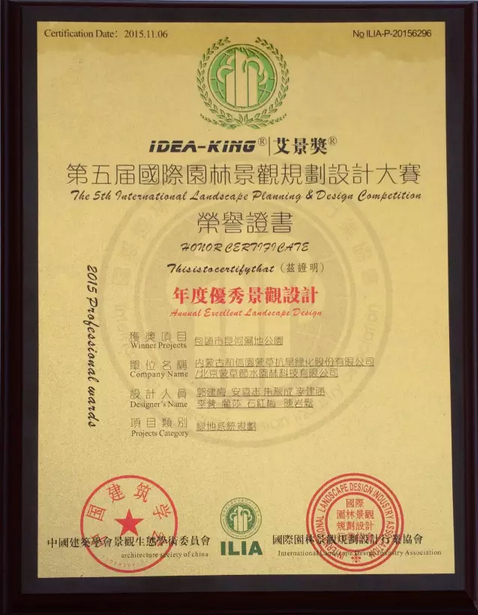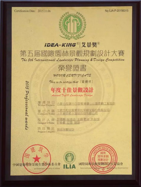 11月8日,第五屆IDEA-KING國際景觀規(guī)劃設(shè)計(jì)大獎(jiǎng)(艾景獎(jiǎng))結(jié)果揭曉。蒙草的子公司(北京蒙草節(jié)水園林科技有限公司)設(shè)計(jì)的作品《包頭市白云鄂博礦山公園》和《包頭昆河濕地公園》雙雙獲獎(jiǎng),分別榮獲【年度十佳設(shè)計(jì)獎(jiǎng)·園區(qū)景觀設(shè)計(jì)】和【年度優(yōu)秀設(shè)計(jì)獎(jiǎng)·綠地系統(tǒng)規(guī)劃】。