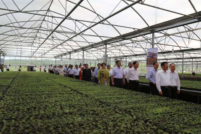 2016年8月25日,國家林業(yè)局黨組書記、局長張建龍率領(lǐng)全國加快國土綠化現(xiàn)場會百余名與會人員,在內(nèi)蒙古自治區(qū)黨委常委、呼和浩特市市委書記那順孟和,內(nèi)蒙古自治區(qū)人民政府副主席王玉明等領(lǐng)導(dǎo)的陪同下來蒙草參觀調(diào)研。
