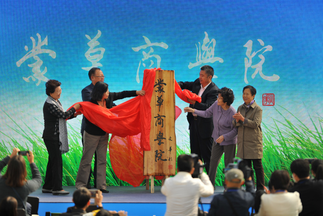 蒙草集團(tuán)董事長王召明先生及蒙草研發(fā)團(tuán)隊(duì)為商學(xué)院揭牌