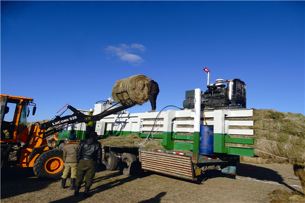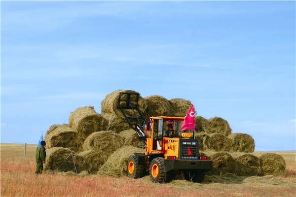 牧民將收割的牧草儲(chǔ)備進(jìn)“牧草銀行”