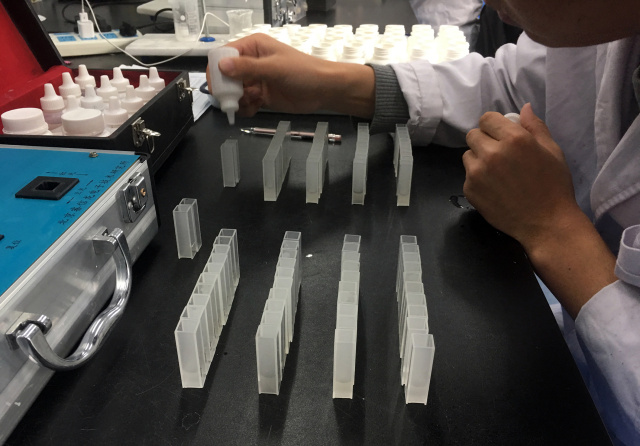 根據(jù)檢測指標將分液好的土壤浸提液加入不同試劑進行反應,待反應完全進行檢測。