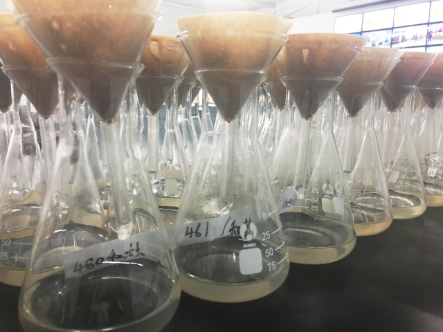 將充分浸提的土樣浸提液用定性濾紙過濾。