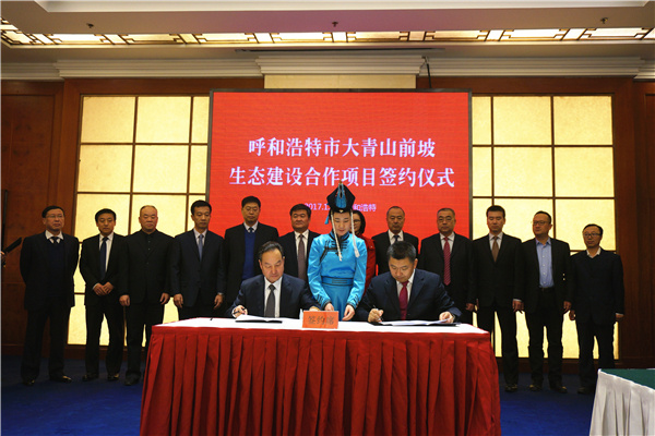 2017年1月25日,呼和浩特市人民政府與蒙草生態(tài)簽署了《大青山前坡治理項(xiàng)目合作意向書》與《呼和浩特綠色生態(tài)發(fā)展基金合作框架協(xié)議》,呼和浩特市市長(zhǎng)李杰翔、副市長(zhǎng)康存耀,蒙草生態(tài)董事長(zhǎng)王召明,土左旗、回民區(qū)、賽罕區(qū)、新城區(qū)政府分管領(lǐng)導(dǎo)等出席了簽約儀式。