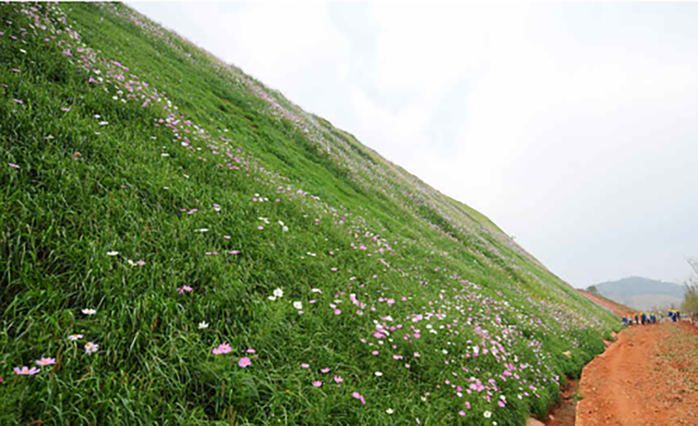 針對(duì)75°以上的斷面石壁,則結(jié)合立地人文資源結(jié)合景觀藝術(shù)造景手法,以浮雕、壁畫、題字等形式改善坡面景觀。蒙草通過(guò)構(gòu)造自然演替,穩(wěn)定植物群落和景觀格局。將其修復(fù)景觀融入到周圍環(huán)境和城市結(jié)構(gòu)中,打造生態(tài)保護(hù)與生態(tài)文旅結(jié)合的自然景觀。