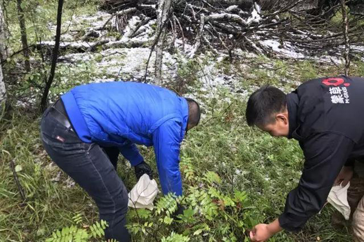 ▲蒙草工作人員在大興安嶺進(jìn)行種子資源采集