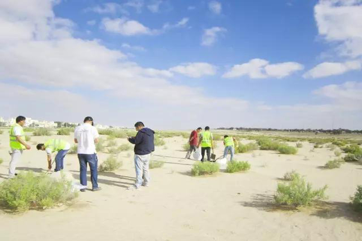 ▲蒙草科研人員在阿聯(lián)酋迪拜進(jìn)行生態(tài)調(diào)研