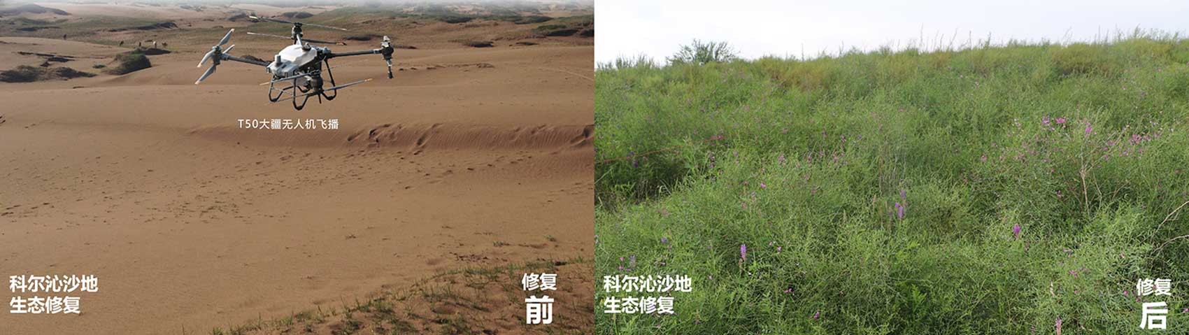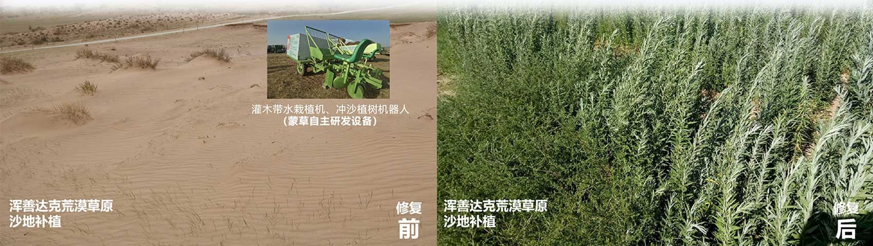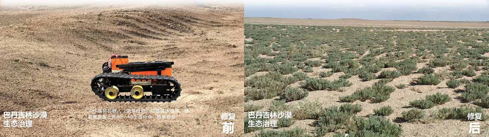 沖沙植樹機器人(蒙草自研)栽植灌木植物,植被覆蓋度上升30—40個百分點,效果明顯