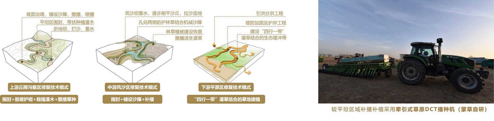鎖邊治理模式(灌草結(jié)合防風固沙技術(shù)、封沙育灌育草技術(shù))+機械沙障+溝川道路“切隔”治理