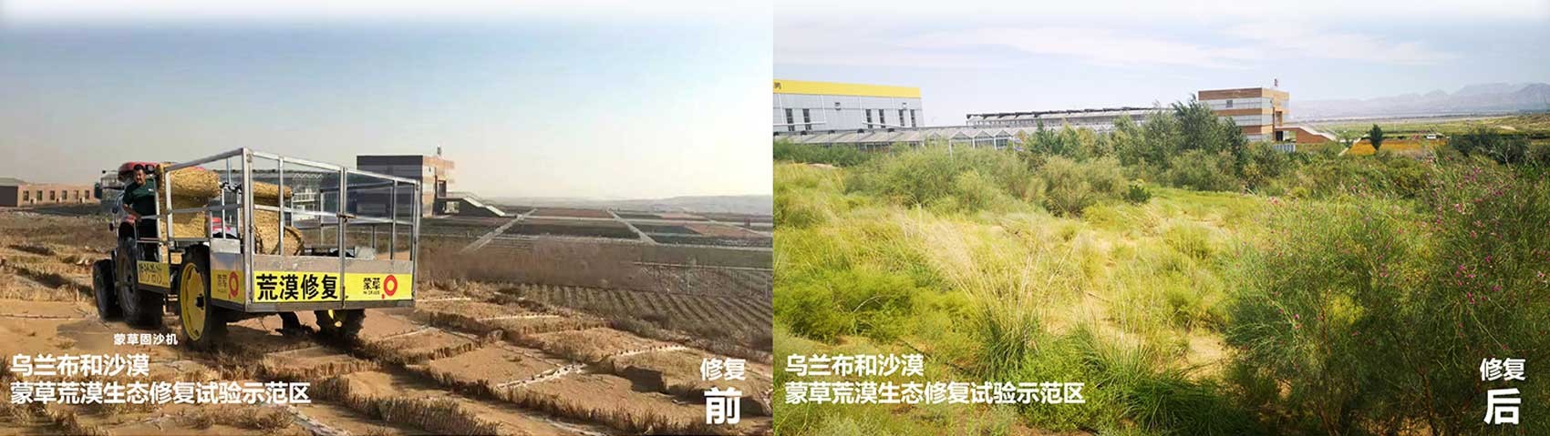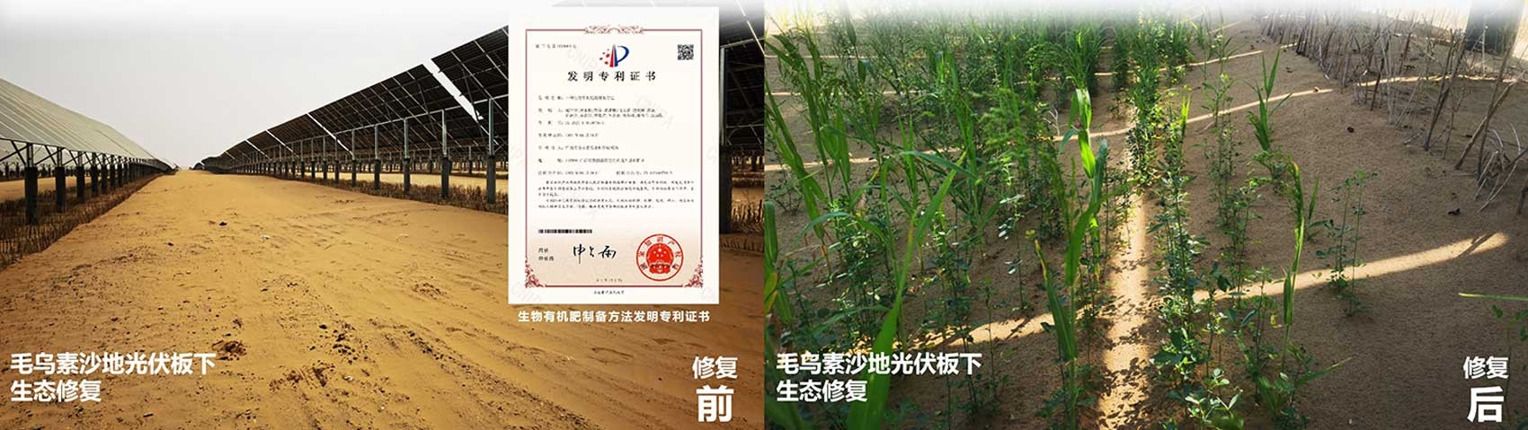 在鄂爾多斯市達拉特旗庫布齊沙漠光伏基地、巴彥淖爾市磴口縣烏蘭布和沙漠光伏基地推廣應用,累計治理光伏下沙化土地3000畝。